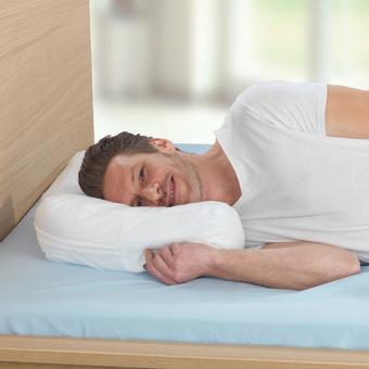 Rund zwei Drittel aller Menschen schlafen auf der Seite – oft mit unangenehmen Folgen. Die Nackenwirbelsäule wird überstreckt, die Schulter stark belastet, das Ohr gequetscht. Dieses ergonomisch geformte Seitenschläferkissen ist eine echte Innovation und bietet viele Vorteile: