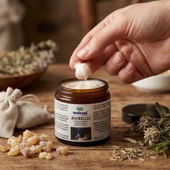 Der Medosan Boswellia Weihrauch Balsam ist einer uralten Rezeptur von Buddhistischen Mönchen nachempfunden und enthält wertvolle Extrakte des Indischen Weihrauchs. Nach Bedarf dünn auftragen und sanft einmassieren. Kontakte mit Augen und Schleimhäuten vermeiden. Nicht auf verletzter Haut anwenden.