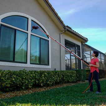 L'Hydrocleaner est la solution idéale pour tous ceux qui souhaitent nettoyer sans effort et en toute sécurité des fenêtres, des vérandas, des façades ou des endroits difficiles d'accès, sans avoir recours à une échelle. Grâce à son manche de 3,6 m de long, vous pouvez atteindre facilement les fenêtres en hauteur depuis le sol. La tête de brosse avec éponge, tampon à récurer et raclette intégrée garantit des résultats impeccables sur le verre et les surfaces sensibles.