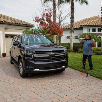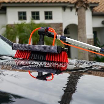 Le tuyau d'eau avec raccords adaptés permet un approvisionnement direct en eau, tandis que la poignée confortable en mousse assure une prise en main agréable. L'adaptateur angulaire professionnel vous permet de nettoyer sans difficulté les coins difficiles d'accès. Le distributeur de savon intégré rend le nettoyage encore plus efficace, ce qui est parfait pour la maison, le jardin, le camping-car ou la véranda.